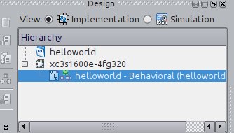 Now, to synthesize our circuit, select View: Implementation and menu Process > Implement Top Module.